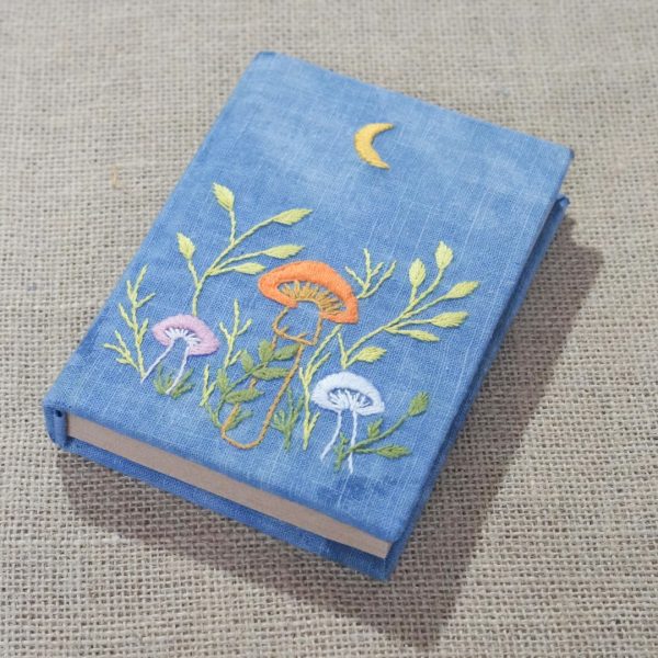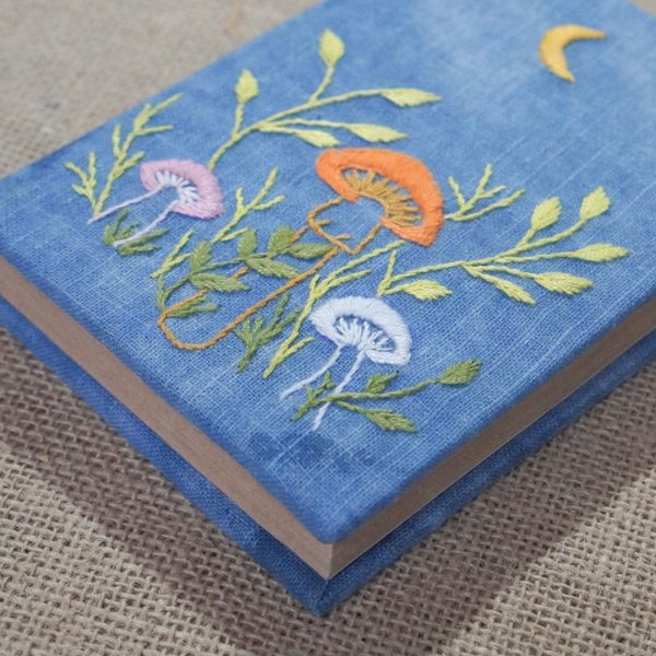 The notebook features a sturdy cover made of hand-dyed indigo fabric and hand embroidery. The interior is lined with either brown kraft paper or cream white paper, providing a meaningful canvas for writing or expressing love.